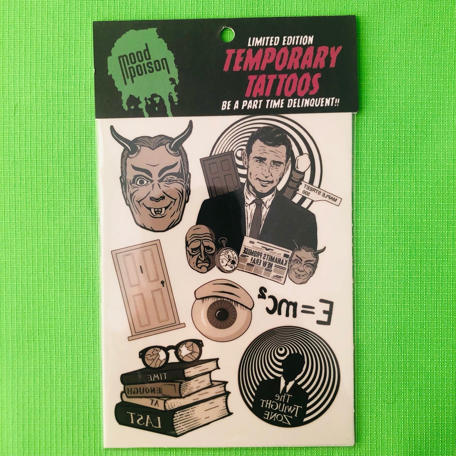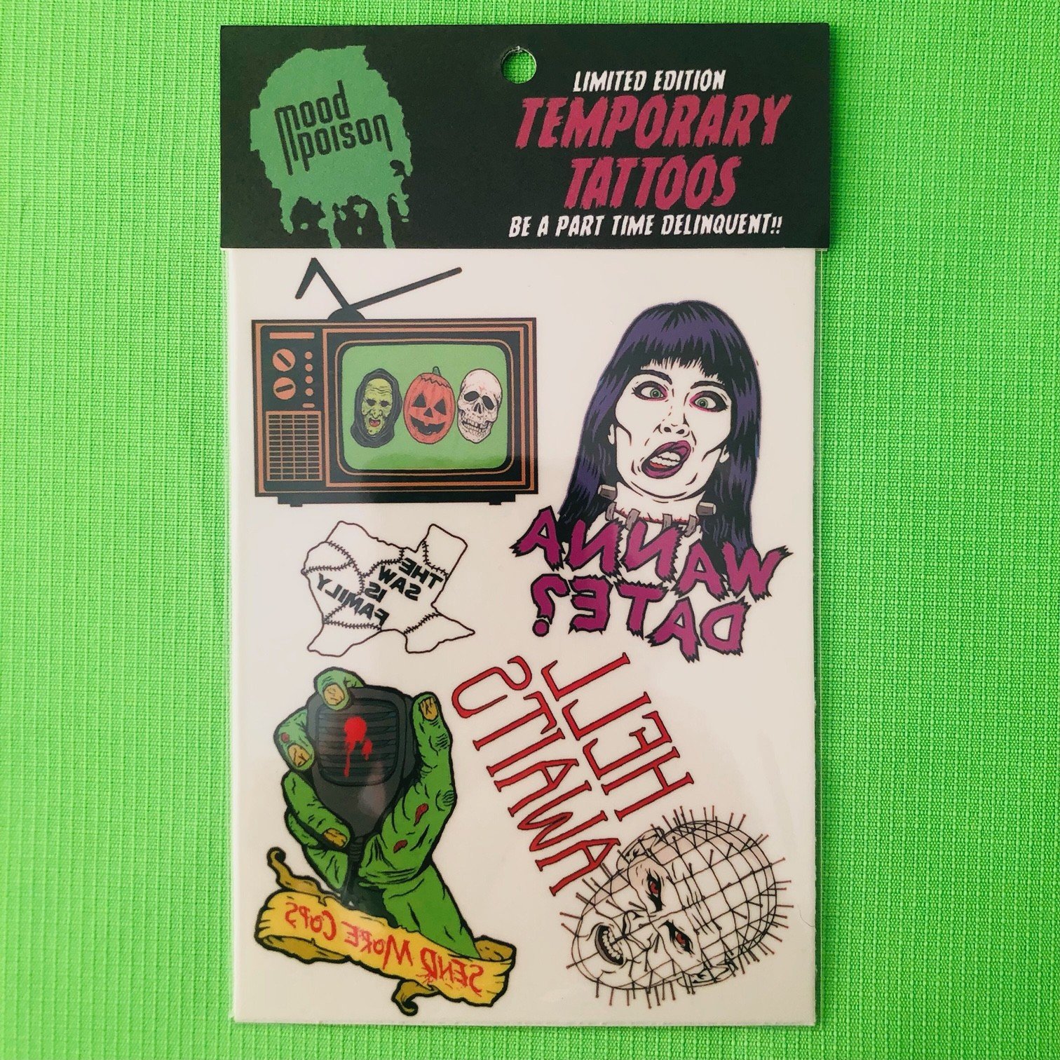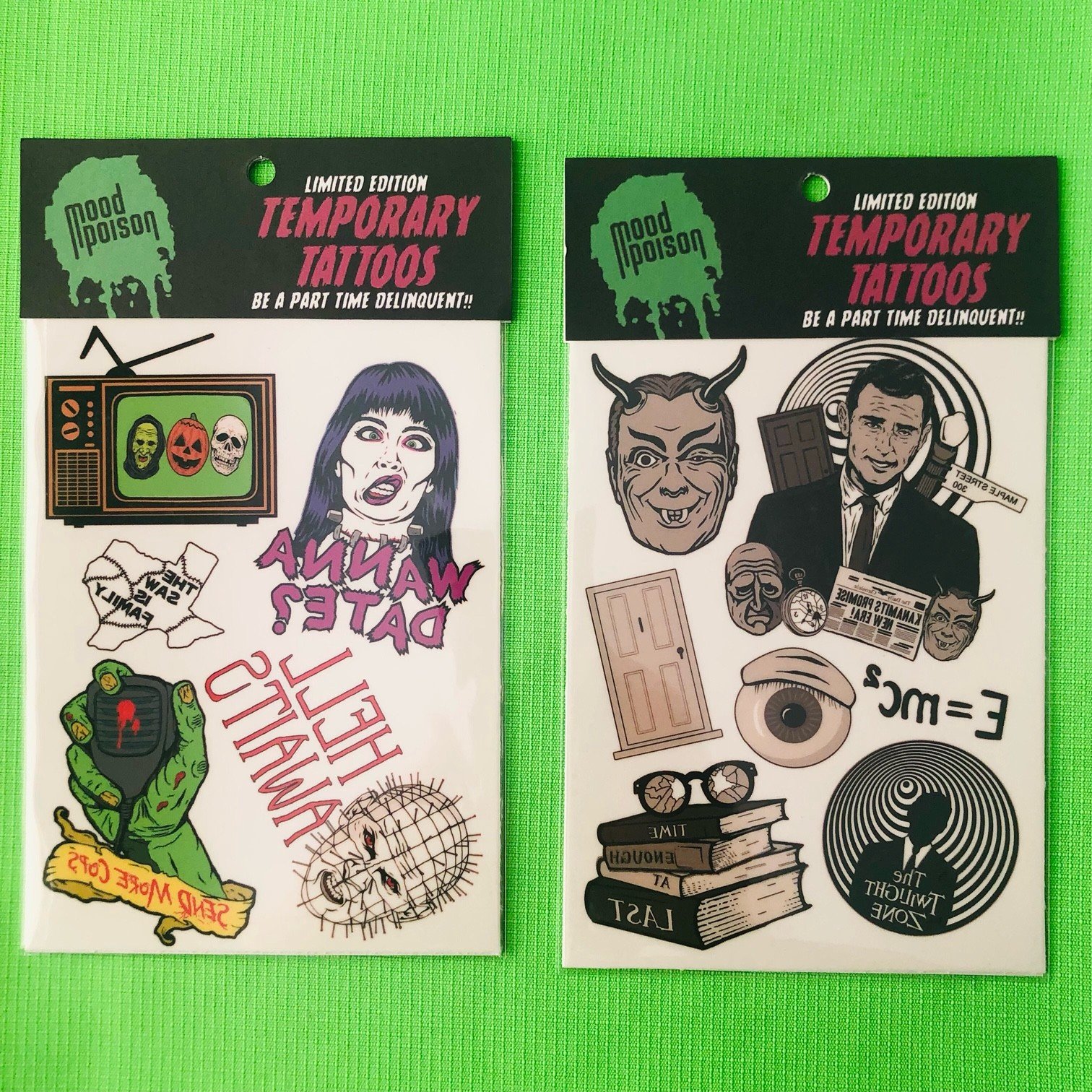 Be a part-time delinquent with our brand new temporary tattoos. Comes in two different packs of your favorite Mood Poison designs!